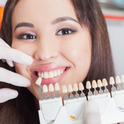 - Veneers: These thin shells of dental-grade porcelain are customized in shape, size, and color to blend into your smile. Once each veneer is bonded in place, it can conceal multiple dental imperfections at once, granting you a flawless grin.